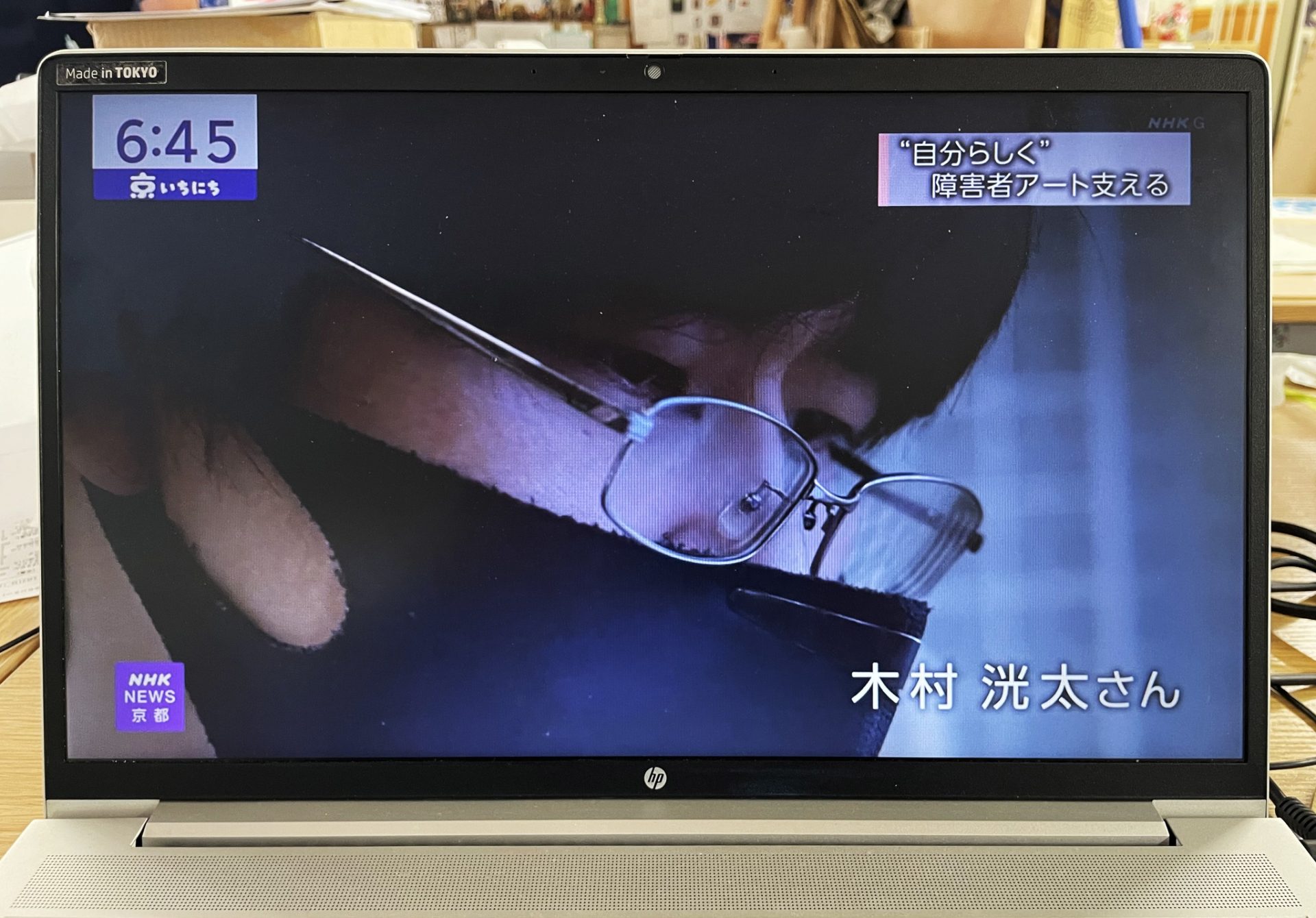 NHK京都放送局がアトリエやっほぅ!!を取材に来られ、番組「京いちにち」でやっほぅ!!の日中活動の様子、木村洸太さんのアート活動についてなど10分ほど紹介いただきました。