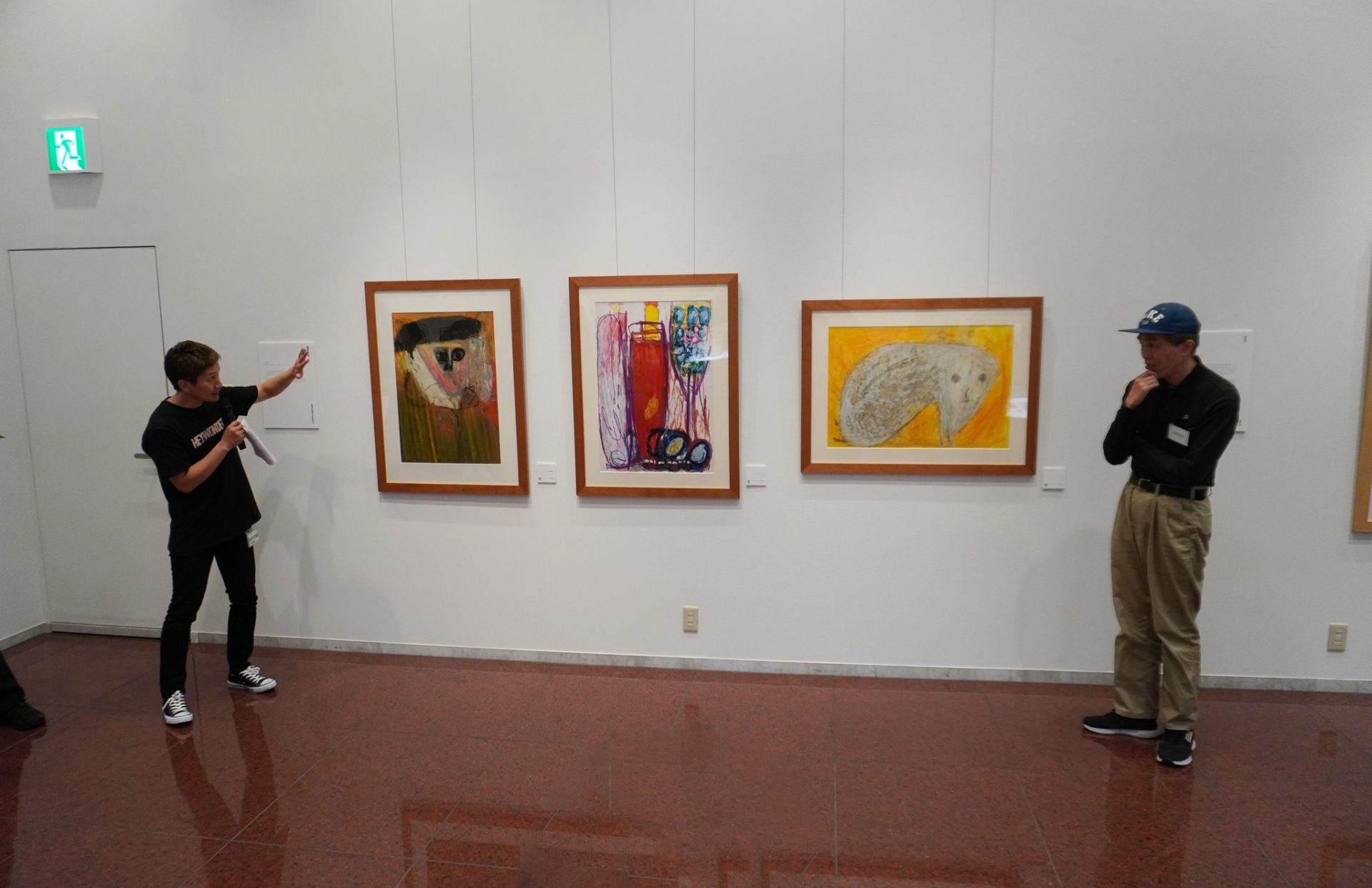 アート・スペース・コージンの寺岡さん小川さんからギャラリー内を巡って作品紹介、そして参加された作家からも思い思いの言葉でご自分の作品について話されて感動的でした。