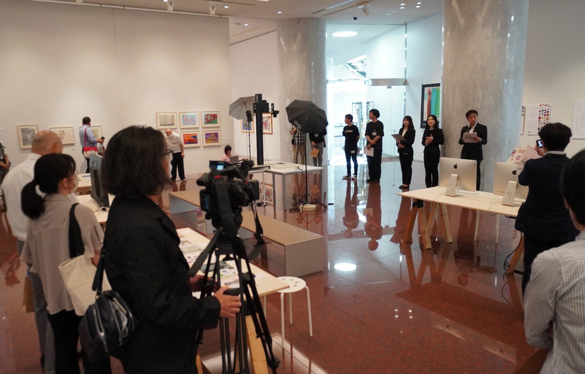 会場には府内の23人の作品と中央スペースにはアーカイブ作業で使用された機材、この事業関連の書類などが展示されていました。