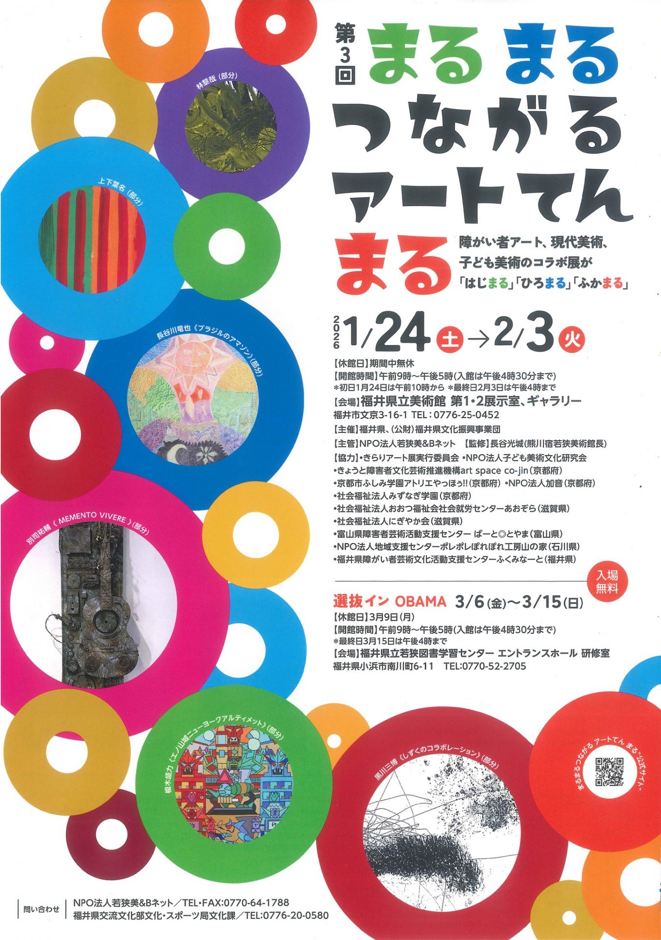 【協力】きらりアート展実行委員会、NPO法人子ども美術文化研究会、きょうと障害者文化芸術推進機構artspaceco-jin(京都府)、京都ふしみ学園アトリエやっほう!!(京都府)、NPO法人加音(京都府)、社会福祉法人みずなぎ学園(京都府)、社会福祉法人おおつ福祉会社会就労センターあおぞら(滋賀県)、社会福祉法人にぎやか会(滋賀県)、富山県障害者芸術活動支援センターばーと◎とやま(富山県)、NPO法人地域支援センターポレポレぽれぽれ工房山の家(石川県)、福井県障がい者芸術文化活動支援センターふくみなーと(福井県)